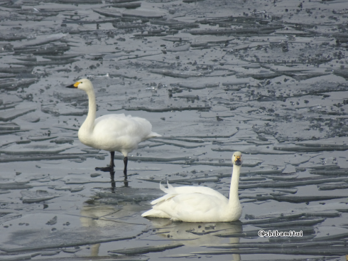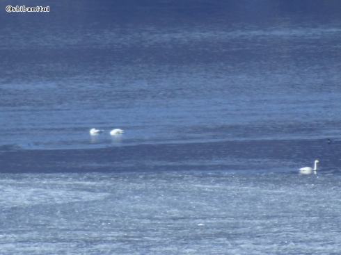 これは↑二日目に遠いところに居る白鳥を宿の部屋から望遠で撮った写真。