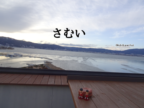 一日目の宿の屋上のテラス席みたいな空間より。すっごい寒くて、急いで写真を撮ってすぐに戻った。湖面の、空が映ってる部分は凍ってなくて、それ以外は凍ってる感じ。最近全面結氷したばっかりらしくて、それが溶けたみたいです。
