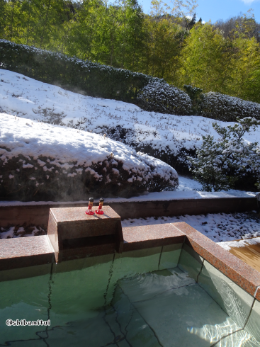 夕方から雪が降ってきて、良い感じで入れました。積もるほどではなかった。夜は-5℃くらいで、部屋からお風呂に入るまでの一瞬が寒いのよね。濡れた床は凍っているし。