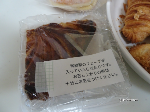 3日目に寄ったパン屋で買ったガレット・デ・ロワ。一月によく売ってるやつ。よく知らないんだけど、調べたらこのふぇーぶっていうのが陶器で出来た置物みたいなやつで、これが入っていたら当たりっていうか、当たった人は一年幸福でいられるらしいのですよ。少し迷って幾つかの中から選んだ。
