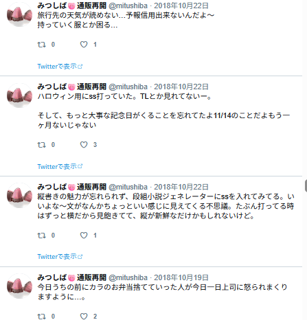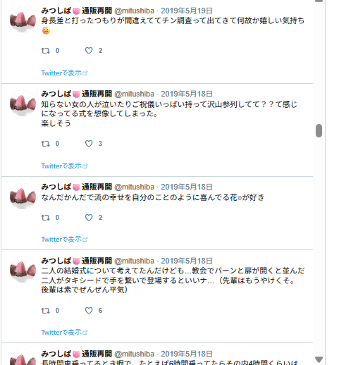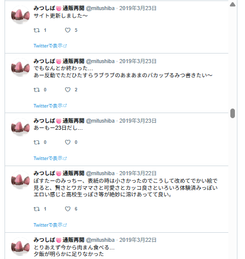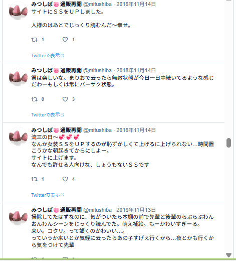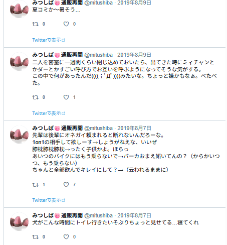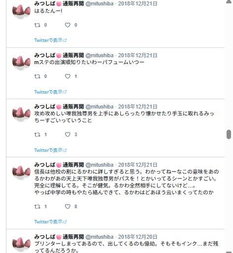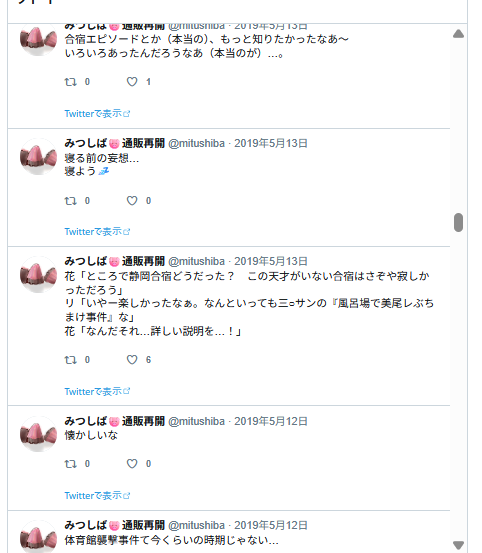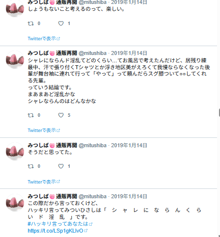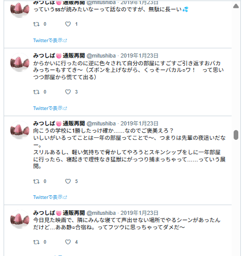 なんかエロ妄想してる様子。リプ欄に続いてるはずなんだけど、リプ欄はログがないのよね…。