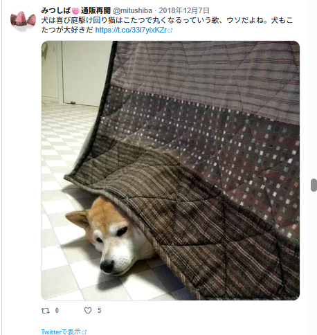 デカいコタツを一人で背負って頑張っている、可愛すぎるうちの犬。